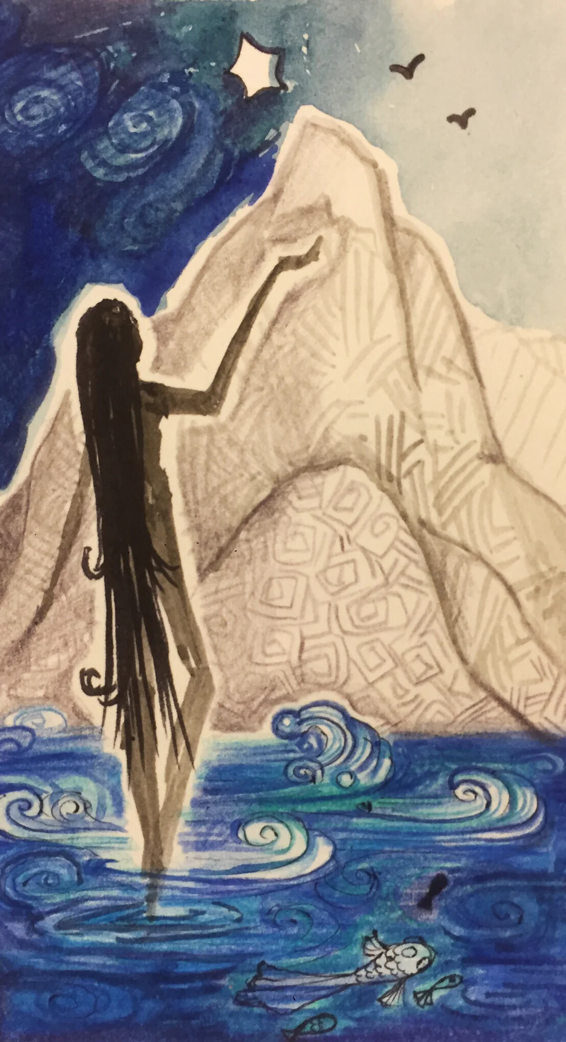 In the beginning, there was only she. Her name was Nüwa, and she was as tall as the mountains, with eyes that shone like stars. Nüwa looked to the sea, and saw fishes swimming to and fro. She looked to the sky, and saw birds flying in flocks. But though she searched high and low, she could not find another like herself! Nüwa was terribly lonely, for there was no one with whom she could laugh, or dance, or sing…