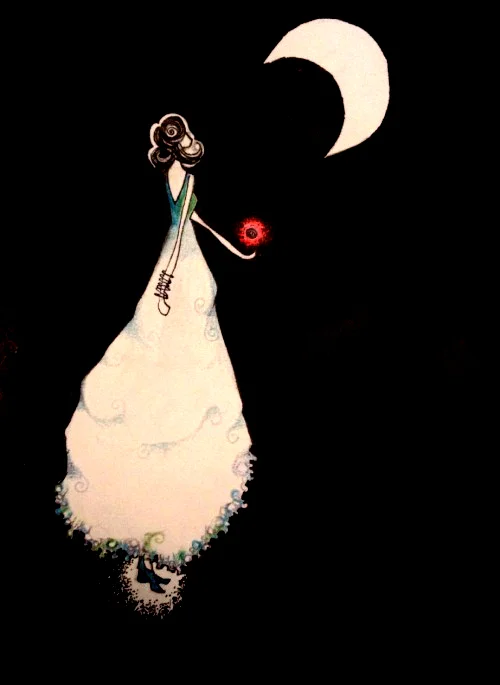 The autumn moon was but a pale shadow in the sky when she decided to go. She wished to leave this palace of rosy coral and cool green jade, and walk among the people of the nearby village. For years and years, she had heard their songs, drifting to her in salt breezes and swirling winds, clear voices that cried of love and loss and hope.